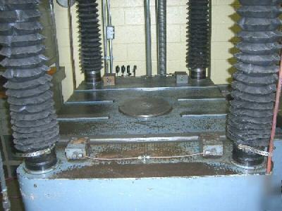 112 Ton, REIS, Up-Acting, 39" x 50" T-Slot Shuttle Tbl, Swing Down Platen, 1970 Reis Hydraulic Press GENERAL SPECIFICATIONS Maximum Retraction Force: 45 U.S. Tons T-Slotted Shuttle Table: 39" x 50" Swing Down Top Platen: 39" x 47" Reis Hydraulic Press EQUIPPED WITH T-Slotter Bolster and Top Platen SPECIFICATIONS SUBJECT TO VERIFICATION All items are sold SPECIFICATIONS SUBJECT TO VERIFICATIONS. All items are offered locally and could be sold previous to end of store listing. |