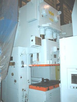 150 Ton Komatsu #SG2-150 2-Point Gap Frame Press (#7216) Shut Height on Bed: 32.5'', (SDAU) Slide Adjustment: 5'' (Powered) Bed Area: 60''LR x 30''FB, (5.5'' T-Slotted Bolster) Slide Area: 60''LR x 30''FB, T-Slotted Frame Opening in Rear: 48'' Wide x 44'' High Maximum Weight of Upper Die: 4.8 Tons Combination Clutch & Brake (Wet-Type) (2) Pneumatic Die Cushions: 6'' Stroke / 44.5''LR x 19.5''FB Pad Area / 18.2 Ton @ 70 PSI Approximate Weight: 52,000 Lbs. Approximate Dimensions: 95'' LR x 120'' FB x 164'' High Inspect under power in our Detroit area warehouse. Leasing is available. Ask our Sales Department for details. Warranty and Leasing Options Available |
