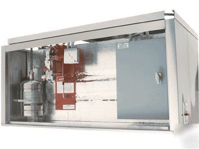 This Energy management System automatically fluctuates the amount of air exhausted and supplied to the kitchen. This system saves you money in energy costs for years to come and ensures proper capture and containment of cooking vapors. 20% Reduction in Fan Speed equates to a 48% reduction in fan energy costs. Fully adjustable High and Low speed set points with the use of Variable Frequency Drives. Low initial up-front costs with quick payback period. Standard Exhaust on in Fire Situations. 100% Airflow Override button with fully adjustable timer. Low Maintenance ''“ Monthly Temperature Probe Cleaning Only. Installed in Exhaust Hood Utility Cabinet and can be Factory Wired 1- 5124EX - 16' 0" Long Compensating Wall Canopy Hood with a Front Perforated Supply Plenum (PSP) Accessory. w/ 1 Factory installed 10 X 46" Exhaust Riser(s) 1- Fire Cabinet on Right of Hood 2- FILTER - 16"x 16" Kleen-Gard Aluminum Baffle Filter with Handles, UL Classified 8- FILTER - 16"x 20" Kleen-Gard Aluminum Baffle Filter with Handles, UL Classified 3- SUPPLY RISER - 8"x 36" Supply Riser with Volume Dampers 1- 1/2 Pint Grease Cup New Style, Flanged 1- Electrical Package Installation in Utility Cabinet by Plant. 1- ANSUL-3.0/3.0/3.0 Ansul 9 gallon Fire System in Utility Cabinet (includes pre-piped hood(s) with detection, tank(s), release mechanism, microswitches and pull station) 1- GAS VALVE - 2" Mechanical Shutoff Valve (Ansul) 1- BDU20 Belt Drive Centrifugal Upblast Exhaust Fan with 20.75" wheel Exhaust Fan handles 4800 CFM @ 0.850" wc. Fan runs at 1051 RPM. Exhaust Motor: 1.500 HP, 3 Phase 208 V, ODP, Inverter Duty (3 phase) 1- GREASE CUP - Grease Cup for kitchen-duty centrifugal exhaust fans. 1- 3 Year Extended Warranty for Fan Motor. Parts only; does not include labor. 1- NSA12 Supply Unit with 12" Blower in Size #2 Housing Supply Fan handles 3840 CFM @ 0.376" wc. Fan runs at 747 RPM. Supply Motor: 1.500 HP, 3 Phase 208 V, ODP (Open Drip Proof) Down Discharge - Air Flow Right -> Left 1- Sloped Filtered Intake for Size #2 Standard Untempered Make-Up Air Unit with 12" blower wheel. 22" Wide x 29.25" Long x 31.5" High. Includes 2" MV EZ Kleen Metal Mesh Filters. 1- 3 Year Extended Warranty for Fan Motor. Parts only; does not include labor. 1- Curb CRB26.5x20E On Fan # 1 1- Hinged Base for Curb. Hinge attached to curb. 1- EMS11102 Energy Management System to Control One Exhaust Fan and One Supply Fan. Includes VFDs, Duct Temperature Switch and Override Control w/Exhaust on in Fire. Controls mounted in Utility Cabinet. INVERTER DUTY THREE PHASE MOTORS REQUIRED! Please send your zip code for a freight quote. |