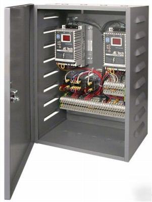 This Energy management System automatically fluctuates the amount of air exhausted and supplied to the kitchen and saves you money in energy costs for years to come all while ensuring proper capture and containment of cooking vapors. 20% Reduction in Fan Speed equates to a 48% reduction in fan energy costs. Fully adjustable High and Low speed set points with the use of Variable Frequency Drives. Low initial up-front costs with quick payback period. Standard Exhaust on in Fire Situations. 100% Airflow Override button with fully adjustable timer. Low Maintenance ''“ Monthly Temperature Probe Cleaning Only. Installed in Exhaust Hood Utility Cabinet and can be Factory Wired 1- 5124EX - 16' 0" Long Compensating Wall Canopy Hood with a Front Perforated Supply Plenum (PSP) Accessory. w/ 1 Factory installed 10 X 46" Exhaust Riser(s) 1- Fire Cabinet on Right of Hood 2- FILTER - 16"x 16" Kleen-Gard Aluminum Baffle Filter with Handles, UL Classified 8- FILTER - 16"x 20" Kleen-Gard Aluminum Baffle Filter with Handles, UL Classified 3- SUPPLY RISER - 8"x 36" Supply Riser with Volume Dampers 1- 1/2 Pint Grease Cup New Style, Flanged 1- Electrical Package Installation in Utility Cabinet by Plant. 1- ANSUL-3.0/3.0/3.0 Ansul 9 gallon Fire System in Utility Cabinet (includes pre-piped hood(s) with detection, tank(s), release mechanism, microswitches and pull station) 1- GAS VALVE - 2" Mechanical Shutoff Valve (Ansul) 1- BDU20 Belt Drive Centrifugal Upblast Exhaust Fan with 20.75" wheel Exhaust Fan handles 4800 CFM @ 0.850" wc. Fan runs at 1051 RPM. Exhaust Motor: 1.500 HP, 3 Phase 208 V, ODP, Inverter Duty (3 phase) 1- GREASE CUP - Grease Cup for kitchen-duty centrifugal exhaust fans. 1- 3 Year Extended Warranty for Fan Motor. Parts only; does not include labor. 1- NSA12 Supply Unit with 12" Blower in Size #2 Housing Supply Fan handles 3840 CFM @ 0.376" wc. Fan runs at 747 RPM. Supply Motor: 1.500 HP, 3 Phase 208 V, ODP (Open Drip Proof) Down Discharge - Air Flow Right -> Left 1- Sloped Filtered Intake for Size #2 Standard Untempered Make-Up Air Unit with 12" blower wheel. 22" Wide x 29.25" Long x 31.5" High. Includes 2" MV EZ Kleen Metal Mesh Filters. 1- 3 Year Extended Warranty for Fan Motor. Parts only; does not include labor. 1- Curb CRB26.5x20E On Fan # 1 1- Hinged Base for Curb. Hinge attached to curb. 1- EMS11102 Energy Management System to Control One Exhaust Fan and One Supply Fan. Includes VFDs, Duct Temperature Switch and Override Control w/Exhaust on in Fire. Controls mounted in Utility Cabinet. INVERTER DUTY THREE PHASE MOTORS REQUIRED! Please send your zip code for a freight quote. |