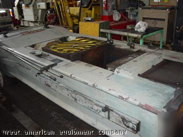 Please see info below and photos on a very nice 176 Ton Lasco Closed Die Hydraulic Forging Press. . It is only available because the company that had it did not have the work for it. It is available to show to you in our Cincinnati, OH warehouse. I can shop and get you a freight rate if you want me to. Please call Paul Trossman at w/ any questions or please email me at 176 TON LASCO HYDRAULIC FORGING PRESS Model VPA 160, S/N 220-80-102, New 1980 Tie Rod Construction, Two Uptrights, Cast Iron Base, Cast Iron Crown, (2) Concealed 5" Diameter Tie Rods 40-1/2" Center to Center Rated at 280 Ton as Per Factory Specifications NOTE: New Replacement Price is in Excess of $ 300,000. Tonnage Capacity..................................... 176 Ton Stroke Length........................................... 16" Bed Size................................................... 27-5/8" x 30-5/8" Ram Size................................................. 27-1/2" x 30-5/8" Daylight w/o Bolsters.............................. 41-1/2" Press Force............................................ 1600 KN Return Force.......................................... 250 KN Vertical Ways......................................... 3" x 41" High Top Bolster Thickness........................... 3-1/2" Bottom Bolster Thickness....................... 6" Motor Horsepower.................................. 60 HP Approximate Machine Dimensions........ 68" x 38" Approximate Machine Height................ 199" Approximate Machine Weight............... 37,000 Lbs. CONDITION: Machine Appears to be in Excellent Condition ! |