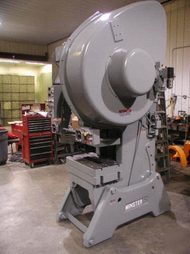 TONNAGE................................................................45 STROKE...................................................................3" SLIDE ADJUSTMENT...........................................2-1/2" SHUTHEIGHT ON BED.........................................12-3/4" BOLSTER DIMENSIONS.......................................21" X 32" X 1.5" MOTOR SPECIFICATIONS....................................EDDY CURRENT SPEED OF PRESS (SPM)......................................0 - 200 BIJUR RECIRC. LUBE SYSTEM..........................INCLUDED STANDARD MINSTER PRESS CONTROL W/DIGITAL SPM & LOAD METER. |