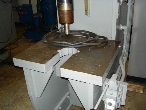 | 1 – USED HANNIFIN C-FRAME HYDRAULIC PRESS MODEL OGF28A-24-1-1-M, S/N T-7884, NEW APPROX 1968. SPECIFICATIONS: CAPACITY 28 TONS STROKE LENGTH 18” DAYLIGHT 24” CYLINDER BORE DIAMETER 7” CYLINDER ROD DIAMETER 4” BED AREA L-R X F-B 24” X 20-1/2” U-SLOT OPENING IN BED W X D 4” X 11” DISTANCE FLOOR TO BED TOP 36” THROAT DISTANCE 14-3/4” HYDRAULIC MOTOR 25 HP OIL RESERVIOR 55 GAL ELECTRICS 3/60/440 WEIGHT, APPROX 6500 LBS. EQUIPPED WITH: SINGLE LEVER CONTROL PRESSURE GAGE WORK LIGHT IAMMDNA |