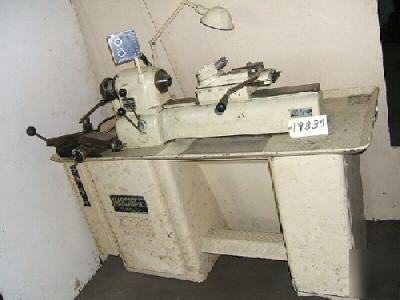 HARDINGE,Md.DSV-59,Dbl. Tool Cross Slide,Compound Slide,5C coll.,3500 rpm.Var.Sp Our stock number: 19830 Hardinge Lathe MODEL NUMBER.................................DSM-59 Hardinge Lathe SERIAL NUMBER................................DV-59-11112 YEAR: 1969 Hardinge Lathe GENERAL SPECIFICATIONS Spindle......................................5C Collets Swing Over Bed...............................9" Length of Bed................................36" Cross Slide.................................3-3/4" Travel of Turret Silde.......................4" Diameter of Turret Holes.....................5/8" Variable Spindle Speeds......................230 to 3500 R.P.M. 1 H.P. 230-460V 60/3 Motor Drive PRELIMINARY SPECIFICATIONS SUBJECT TO VERIFICATION |