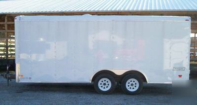 2006 Haulmark 8.5 x 18 Transport Car Carrier On all 2006 Car Carrier & Race Transport Models In Stock at our Kentucky Store Upgrade to Aluminum Wheels* for $100 The value level Transport Car Carrier tag hitch trailer is ideal for moderate auto hauling. Designed to transport one car, it's available in several lengths, assuring you the space you need for parts, equipment and supplies. What's more, features like beavertail floor and a rear ramp door make loading and unloading easier. Trailer brakes in conjunction with tow vehicle for increased safety Quick, convenient entry and exit Swing wide open for easy loading Rust inhibiting chassis protection Attractive, economical interior wall protection 2,000lb Tongue Jacks: 2,000lb Silver Powder Coated Top Wind Tongue Jack Safety Chains: 7,800lb Silver Safety Chains w/Gold Hook Tires: ST205/75D15 C Rated Tires Wheels: 15in 5 Hole White Spoke Wheels Brake Accessories: Breakaway Switch Brake Type: Electric Drum Brakes Braking System: Standard Braking System Rear Doors: Standard Wt. Rear Ramp Door w/16in Plywood Ext. Side Doors: 36in Bar-Lock Side Door Crossmember Spacing: Crossmembers 24in On Center Finish: .030 Aluminum Exterior Main Rails: 2in x 6in Tube Main Rails Roof Bow Spacing: Roof Bows 24in On Center Roof Bows: Hat Section Roof Bows Sidewall Construction: Dust Resistant Sidewalls Sidewall Liner: 3.6mm Luaun Sidewall Liner Top Wrap: Polar White Top Wrap Vertical Post Spacing: Vertical Posts 24in On Center Vertical Posts: 78-3/4in Hat Posts A-Frame Couplers: 2-5/16in 10,000lb Coupler Exterior: License Plate Brkt w/Seperate Light Lighting: Incandescent Clearance Lights White, black and silver in stock. Call to confirm color availibility. *Aluminum are after market not OEM For details please call toll free Mon - Fri 10-5 and Sat 9-2 Eastern Time We've been flooded with e-mails and do not have time to answer them all. If you are interested please call us toll free. We stock approximately 500 trailers. If we don't have it, we can probably get it. For additional information please call our Kentucky showroom toll free or our Indiana showroom toll free . Factory orders with pick-up available in Please call for a price quote This trailer is available for immediate pick-up in Lebanon Junction, Kentucky. Approximately 20 miles south of Louisville Kentucky, exit 105 off I-65. We deliver for $1.35 per mile, one way, plus any tolls. Cashier/Certified check, money order, |