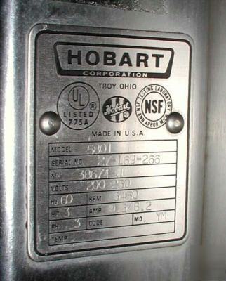 Ganson Rose Equipment and Richard Paul Associates are offering the following piece of equipment. The piece has been tested to assure the unit works as designed, it has been cleaned and any defects corrected. Each piece of equipment is ready for use, some pieces may need minor cleaning of dusting and if used for Food Products surfaces should be sanitized. If you have any questions regarding this piece of equipment or any other please feel free to call me @ Cell or Office Item description: Hobart Meat Saw, this unit is all stainless steel. It is about 9 years old and was well maintained. It has a 3 Horse power motor. Hobart Meat Saws are the easiest to clean in the industry. You just remove the parts—without tools—for quick, thorough cleaning. Simple to operate, Hobart’s stainless steel, open-frame meat saws save operator's floor space, time and labor as it cuts through product flawlessly. Direct Gear Drive, split rear tables, Serial Number: four units 3 with ML 38674-J Power Consumption: 208/230, 3.5 Amps, three phase |