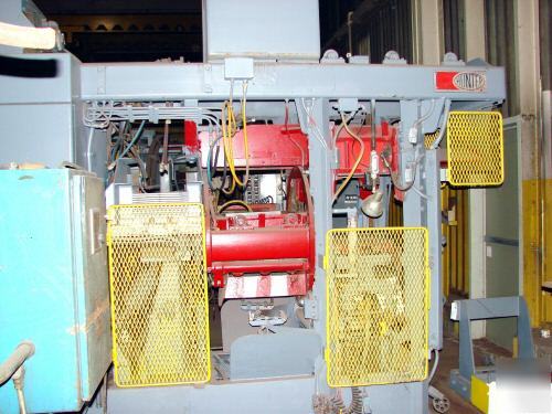 HUNTER Automatic Molding Machine for Green Sand Molds, Flask Size is 18" X 20", Up to 100 Molds Per Hour, Model 18-C, Late 80's Vintage, Includes Bottom Board Return Conveyor with about 15 Aluminum Bottom Boards.