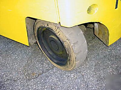 This is a Hyster Electric Forklift with Triple Stage Mast in good operating condition. Brakes work and there are NO LEAKS. This forklift had a paper clamp and has a forth control valve with 3 pressure setting. Comes with forks only, NO PAPER CLAMP. Could use a new bottom seat cover. * 4th Control Valve with 3 Settings for Cascade/Paper Clamp * 4959 Hours / 1235 Pump Hours * White Non-Marking Cushion Tires (Solid) * Battery - 36 Volt / 1000 Amp Hr. Max * Total Weight 12,050 Pounds * 18X8X12.125 Tires Front / 16X6X10.5 Tires Rear * Maximum Fork Height 187.5" / Lowered Height 82" * Monotrol Directional/Speed Pedal * Maximum Load at fully extended height from back of forks to centerline of load 3200 Pounds @ 27" / 3400 @ 24" / 3700 @ 20" Any questions e-mail or call Brandon @ . Please include item number in all correspondence. No charge for packing, skidding or loading. See other items in our e-Bay store. Be sure to add me to your favorites list! |