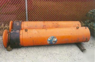 Hydraulic Ram Lift Cylinders with Gasoline Powered Engine from Rodgers Hydraulic Inc. ~Tonage Capacity: 600 Tons per cylinder (x2 cylinders) Total: 1200 Tons. ~Pump is gasoline driven hydraulic. Motor made by Wisconsin ~Overall Outside: 18 inch diameter |