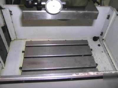 (1) USED - -CHARMILLES TYPE D10 BENCH TYPE, CONVENTIONAL RAM TYPE EDM MACHINE WITH ISOPULSE TYPE 25 POWER SUPPLY GENERATOR* Table Dimensions 13.75" W x 8" D Tank Dimensions 21" W x 14" D x 8" H Table Longitudinal Travel - X-Axis 7.87" Table Cross Travel - Y-Axis 4.75" Quill Vertical Travel - Z-Axis 3.87" Backslide Travel 7" Platen to Table-Top - Maximum 14.75" Electrical System 220/3/60 Approximate Weight 700 Lbs. Charmilles Isopulse P25 Generator (Power Supply), 25 Amps Charmilles-Erowa Isocut Orbitor with Charmilles Tapered Chuck *Preliminary Specifications Subject to Verification. |