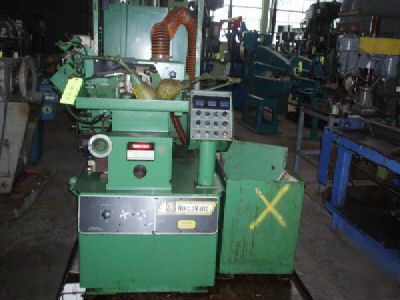 #100C GIDDINGS & LEWIS/WINSLOW "WINSLOWMATIC" New 1981, Serial No 941-00180-81, Model 100C Spark Out Counter - Pace Setter Attachment Drill Diameter, Conventional Point..... 1/32" to 1" Drill Diameter, Helical Point.......... 3/32" to 1.5" Drill Diameter, Racon Point............ 1/16" to 1" Drill Diameter, Split Point............ 3/32" to .5" Drill Point Angles, Range.............. 90 to 140-DEGREES Grinding Wheel Diameter, Maximum....... 20" Grinding Wheel Width, Maximum.......... .5" Grinding Wheel Hole Diameter........... 12" Spindle Motor, Horsepower.............. 3 HP Hydraulic Motor, Horsepower............ 3 HP Floor Space Required, W X D............ 7'5" X 8'8" Weight, Approximately.................. 3000 LBS CONDITION: Appears To Be In Very Good Condition. This Machine Will Sharpen Two Flute, Right Hand Drills With An Included Angle From 90 to 140-Degrees. The Drill Point Can Be Ground To A Conventional, Helical, Racon, Or Split Point Geometry. A Production Rate Of 300 to 700 Drills Per Hour Can Be Sharpened On This Machine. PRICE: F.O.B. OUR WAREHOUSE............ $8,950.00 All machines/equipment subject to prior sale. |