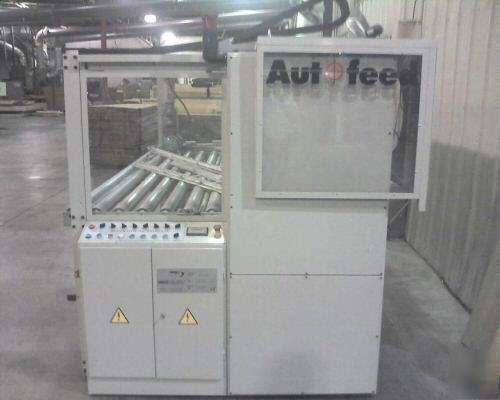 Jumbo Boxmaker Specifications: * (2) Additional paris of slitters w/ holders * (4) Additional paris of scores w/holder * (1) Set (4 pcs) automatic glue/stitch tab trim removers * (2) Pneumatic multi-function work stations * (1) Small flexo printer (11.8" x 19.68") * IMG Automatic feeder, Model "Autofeed 2800" * 98" x 236" (6,600lb max cap) lift table * Additional 19.68" moveable flexo printer |