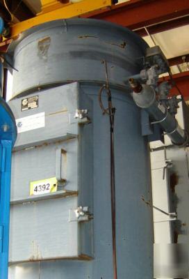 APPROX 150 SQUARE F00T GRIFFIN CARBON STEEL DUST COLLECTOR MANUFACTURED BY GRIFFIN ENVIRONMENTAL COMPANY, . MODEL CF10F. SHOP ORDER # 24095. 33 DIAMETER SHELL. BAG LENGTH APPROX 72. 3 PIPE BLOW PIPE HEADER SYSTEM. UNIT HAS DISCHARGE ROTARY VALVE MOUNTED ON AN OUTLET FLANGE. VALVE HAS A 1/2 HP 230/460 VOLT MOTOR WITH CHAIN DRIVE & BLOW THROUGH DESIGN. 3 O.D. PLAIN END PIPE FITTINGS. COLLECTOR HAS 3 O.D. PLAIN END DIRTY AIR INLET AND SIDE ACCESS DOOR IS 20 X 32. OVERALL HEIGHT IS APPROX 138. UNIT IS COMPLETE WITH GOYEN SOLENOID VALVE BOX BUT NO TIMER. REBUILDING AVAILABLE AT ADDITIONAL COST FOR ADDITIONAL ITEMS VISIT J&M INDUSTRIAL AT |