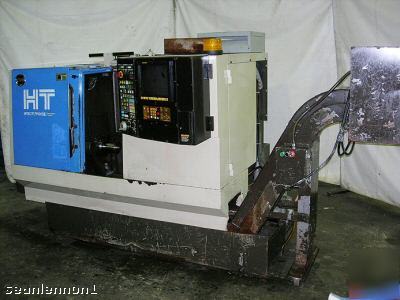 Specifications... Capacity: Swing....15" (380mm) Chuck size... 8" (210mm) Max. turning dia... 8" (210mm) Max. shaft length... 15" (280mm) Bar capacity... 2" (51mm) Travel: X Axis...7.9" (200mm) Z Axis...15.7" (400mm) Spindle: Spindle speed... 30-5000 RPM Spindle speed range... Stepless Spindle nose... A2-6 Hole through spindle... 2.3" (59mm) Bearing dia. of spindle...3.5" (90mm) Turret head: No. of tool position... 12 Tool size:OD tool... 1"/1"/.75" 25mm/25mm/20mm Tool size: ID tool... 1.25"/1.25"/1"32mm/32mm/25mm Turret index time... 0.1/face sec. Feed: Rapid traverse X Axis... 787 IPM/20m/min. Rapid traverse Z Axis... 945 IPM/24m/min. Cutting feed... 0.0001-20.0"/rev. 0.01-50mm/rev. Jog feed...0-80 IPM/0-2000mm/min. Tailstock: Stroke...15.7"/400mm Spindle inside taper... MT5 Motors: Spindle motor... 50% ED 15 HP/11 AC kw Feed motor X Axis... 1.4 HP/1.03 AC kw Feed motor Z Axis... 1.4 HP/1.03 AC kw Coolant unit...25 HP/0.18 kw Power capacity...18 KVA Weight...9,020 LBS Equipped With... Hitachi Seiki conversational CNC control (LX3 Yasnac) Q Setter.... Coolant unit.... Tailstock..... Spindle load meter..... Spindle speed meter... Spindle speed override... Splash guard cover...