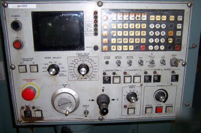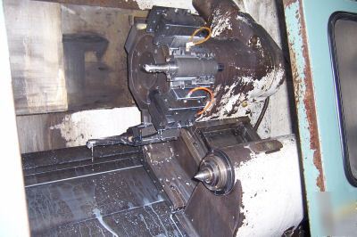 Yasnac 2000G control. 8 tools, chip conveyor, max. work length is 24", X-axis travel - 9.3", Z-axis travel - 24", Cross slide - 15.3", Swing over carriage is 23.6", Front cover is 21.6". Weight is about 13,500. Any questions please call John at or his cell at . You may also email him at . * All bills must be paid in full within seven days of notification of sale. We reserve the right to resell items that remain unpaid after 7 days. * All skidding and boxing of items sold is extra. * If arrangements are being made to pick up the item(s), storage will be charged beyond the initial 15-day period. |