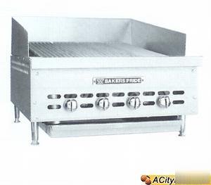 ACityDiscount Restaurant Equipment: Bakers Pride 21in x 24in Counter Glow Stone Char Broiler XX-4GS Many more models available below - Manufacturer: Bakers Pride - Model: XX-4GS ACDID37864 ACDMA178 ACDCA53216 ACDSEP ACDSP ACDTY7 ACityDiscount Restaurant Equipment Bakers Pride 21in x 24in Counter Glow Stone Char Broiler XX-4GS Many more models available below Click here to see a non-scaled image. This picture is for reference only. The actual model is sold without the backsplah shown above. Countertop gas radiant or glo-stone char broilers with exceptionally low profile design are only 13 1/4in. to broiling surface making the XX-GS series broilers ideal for use on refrigerated cabinets while a 24in. deep broiling surface provides the largest broiling area and production capacity in its class. Exterior is all stainless steel with unique air blanket for ventilation and cooler outer temperatures. Front grease trough, slide out stainless steel water pan/grease drawer and 4in.chrome plated adjustable legs are standard. Interior combustion chamber is fabricated of 11 gauge and 16 gauge HRS and hand welded to form a single unitized body. The XX models feature 24in. long, 216,000 BTU/hr., independently controlled, clog-proof, high efficiency burners located every 4 7/8in. for maximum heat and feature flame guards attached to the underside of each burner to protect grease from direct contact with flames. Radiant models feature 14 gauge, 300-series stainless steel radiant heat deflectors placed directly above each burner for even heat transfer to the broiling surface, while cast iron radiants are optional. Glo-Stone models add flame flare for a richer flavor profile and are ideal for exhibition kitchens. Standard top grates are cast iron with channels to direct grease to front trough. Grates are 24in. long with 3/4in. rib spacing. While several grate types are optional and may be nixed and matched at no additional charge. Each grate may be manually adjusted in any of three separate tilting positions. Includes 1 year parts limited parts and labor warranty. Bakers Pride char broilers come with the following features: * Cast iron top grates for broiling-floating rods or meat grates available at no extra charge. * 18,000 BTU/hr. per burner with individually operated control valves located every 4 7/8in. * Aluminized steel burners feature flame guards. * Up to 216,000 BTU/hr. per broiler in natural or propane gas. * All stainless steel exterior finish. * Heavy plate steel unitized body construction. * Low profile, countertop design-only 13 1/4in. to broiling/grilling surface. * Stainless steel slide-out grease drawer/water pan and 4in. legs. * Stainless steel radiant heat deflectors-cast iron or glo stones optional. * 3/4in. NPT rear gas connection and pressure regulator. * Limited one year parts and labor warranty. Finance Equipment For Your Business - Click Here Finance This Equipment For Your Business Available for purchases totalling $2,000 or more Other Related Items from ACityDiscount Bakers Pride Glow Stone Char Broilers ACityDiscount Restaurant Equipment ACityDiscount Restaurant Equipment ACityDiscount Restaurant Equipment ACityDiscount Restaurant Equipment Click here for a complete list of Recommended Items [ in this Category ] [ made by Bakers Pride ] Click here for printable version (09:30 - 17:00 EDT) Copyright © 2007 ACityDiscount. All Rights Reserved ACDID37864 ACDMA178 ACDCA53216 ACDSEP ACDSP ACDTY7 |