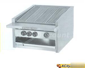 ACityDiscount Restaurant Equipment: Bakers Pride Low Profile 69in Counter Broiler Glo Stone L-72GS Many more models available below - Manufacturer: Bakers Pride - Model: L-72GS ACDID37917 ACDMA178 ACDCA53216 ACDSEP ACDSP ACDTY7 ACityDiscount Restaurant Equipment Bakers Pride Low Profile 69in Counter Broiler Glo Stone L-72GS Many more models available below Click here to see a non-scaled image. The Baker's Pride Low Profile Counter Top Style char broiler is designed for high volume char broiling in natural or LP gas. L-R Series includes 14-gauge stainless steel radiants above each burner for maximum heat distribution to cooking surface. The L-GS series features Glo Stones for extra high heat and flame-flare. Radiants and Glo Stones are interchangeable without tools and may be mixed and matched on the same broiler. High performance, clog-proof, aluminized steel burners are rated at 15000 BTUH each and located approximately every 4in. Each burner features a separate, independent, operator-controlled valve with stand-by position. Standard grates are fabricated of 1/2in. diameter steel floating rods. A variety of different style grates are optional and may be mixed or matched. Each grate may be adjusted independently in any of four tilting positions. Broiler grates are 24in. deep for maximum production. Heavy duty stainless steel exterior, interior and combustion chamber. Broiler cabinet construction is double walled with fully insulated sides, back and bottom. The exterior measures 27 1/2in. deep plus 6in. stainless steel work deck by 13 1/2in. high to front broiling surface plus optional 4in. legs and 18in. high in rear. Broiler may be used with or without legs (provided). Widths are available in six sizes from 24in. to 84in. L-GS series broilers include the following standard features: * Stainless steel exterior, interior and combustion chamber. * Easy-lite / Always-lit crossover pilot tube. * Double-walled, fully insulated construction. * High performance, 15,000 BTUH burners. * Up to 300,000 BTUH per broiler, natural or LP gas. * Independently controlled, adjustable valves for each burner with stand-by position. * Heavy-duty 14 gauge stainless steel radiants above each burner or Glo Stones-may be mixed and matched. * 1 1/2in. deep stainless steel, slide out grease drawer and water pans. * Individually adjustable, 4-position tilting, floating rod type grates - cast iron and meat grates available at no extra charge. * Rear gas connection and pressure regulator. * One year limited parts and labor warranty. Finance Equipment For Your Business - Click Here Finance This Equipment For Your Business Available for purchases totalling $2,000 or more Other Related Items from ACityDiscount Bakers Pride Glow Stone Char Broilers ACityDiscount Restaurant Equipment ACityDiscount Restaurant Equipment ACityDiscount Restaurant Equipment ACityDiscount Restaurant Equipment ACityDiscount Restaurant Equipment Click here for a complete list of Recommended Items [ in this Category ] [ made by Bakers Pride ] Click here for printable version (09:30 - 17:00 EDT) Copyright © 2007 ACityDiscount. All Rights Reserved ACDID37917 ACDMA178 ACDCA53216 ACDSEP ACDSP ACDTY7 |
