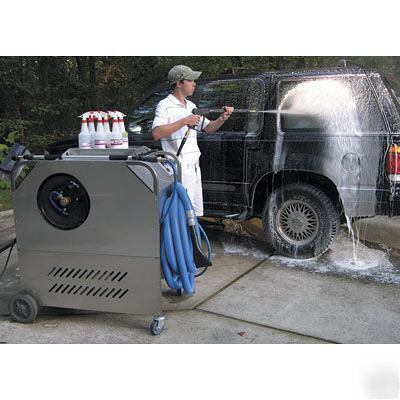 Portable Car Wash System - Fleet Recommended - Commercial 2 GPM - 1,000 PSI - 110V Electric - TEFC Pump Motor - 3 Stage Wet & Dry Vacuum * Commercial Heavy Duty Fleet Recommended Portable Car Wash System * Our heavy duty portable car wash system is a self-serve fleet vehicle cleaning system with foam brush, integral detergent/wax concentrates, pressure washer and vacuum system — offering the same features, functionality and performance as a typical coin-operated car wash systems * Continuous duty triplex pump * TEFC direct coupled pump motor * 110V / 60 Hz / Single Phase with GFCI switch * 120" H2O, 100 CFM, 3 stage wet/dry vacuum * Integral detergent/wax concentrates with automatic injection * 4 wheel stainless steel frame * 35' Pressure and foam brush hose with hand reels * 25' reinforced vacuum hose and attachments * Watertight electrical controller * Dimensions: 47" L x 32" W x 45" H * Please allow 2-3 weeks for delivery within the Contiguous United States * 1 Year Manufacturer's Warranty (Includes Parts & Labor) All of our products are sold with at least a One Year Manufacturer's Warranty. If you receive an item that becomes inoperative within the manufacturer's warranty period, you will be required to exercise your warranty directly with the manufacturer for the repair or replacement of the product. We will not accept product returns which are covered by a manufacturer's warranty. |