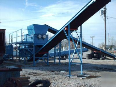 SSI is a leader in the shredding industry, and the Model 3400E is a powerful machine that holds up to that standard. This machine is an electric shredder with a 200hp electric motor. The cutting chamber is 45 x 75, so it’s a great machine for car and light truck tires, as well as semi truck tires. This machine has been rebuilt in our shop so it is ready to go to work. All new gears, bearings and seals have been installed. The knives have been rebuilt and hard faced, and the shafts have been re-machined. In addition, the control panel has been completely rebuilt. It has a brand new, custom built stand, in-feed conveyor and out-feed conveyor. This is a very robust machine that will do 800 car tires or about 100 truck tires an hour. A great addition to any tire shredding business. This machine can also be set up as a 2 chip producing system.