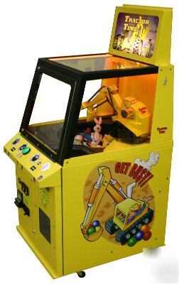 Kids love to excavate candy and prizes again and again with the Tractor Time Crane! This fun machine lets kids see and hear the roar of the tractor as it rotates side to side and then, at the press of a button, scoops up a load of prizes, candy, plush or whatever else you choose. The rotating prize basin makes it even funner to use. The Tractor Time was #1 in the Crane and Rotary category in a recent PlayMeter Magazine Poll, and for good reason. Give this machine a try and you'll see why the Tractor Time is bringing in amazing profits for so many. "This is a great revenue maker! It's one of my #1 games. This thing is hot!" - Robert Coons, Oski Corp., Reno NV "We've started to put Tractor Time in our restaurant locations. We already have got candy cranes in the locations and we have noticed that the Tractor Time has been a great addition for our incremental bottom line revenue, averaging around $800 per month." - Eric Friedlander, TNT Amusement, Dallas TX * REPORTED ROI: $214 Weekly! * Proven Success in Bowling Alleys, Family Restaurants, Sports Bars, Bar & Grills, Arcades, Waterparks, Movie Theaters, Amusement Parks, Skating Rinks, Sports Arenas, Pizza Shops, Campgrounds, Family Entertainment Centers, Laundromats, Travel Stations, Big Box Retailers, Golf/Mini Golf Courses, Zoos, Traditional and Non-traditional Crane Locations and many more! * Programmable Single Play or Play 'til You Win * Accomodates a Variety of Prizes, Including Plush, Novelties, Balls, Capsules & Candy * Dimensions: 28"w x 36"d x 64 "h This game is easy to use so kids of all ages will love it. Simply press the bright green button and let the tractor do the rest. The tractor will lower its arm into the prize area and attempt to retrieve a prize, lifting it to the prize shoot and releasing it. CLICK HERE TO SEE THIS CRANE IN ACTION! |
