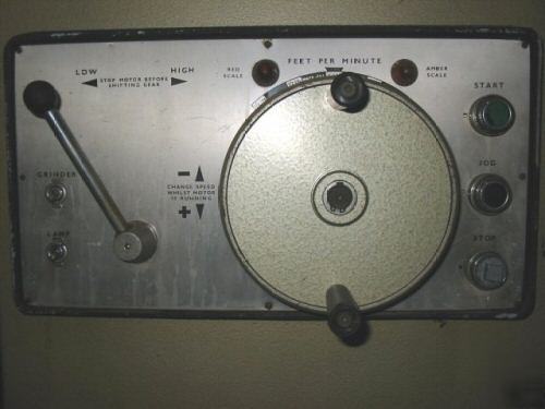 Used Kalamazoo/Startrite Model 316H Vertical Bandsaw            Throat:                                                36            Work height under top guide:            14            Blade dimensions:                              1/16 – 1 wide x 181-½ long            Blade Guides:                                    Chevron type            Drive Motor:                                      3 HP, 220 volt, 3 phase            Blade Speeds:                                    50 – 3600 sfm            Dimensions:                                       26 x 27-¾            Tilt:                                                     45º right, 15º left            T-Slots:                                               4 in table top, 1 front edge            Table Height:                                     42            Auxiliary table:                                  13 x 22 Machine Dimensions:                                   80l x 43 w x 82 h                                                                        1680 lbs. ·              Blade welder, Model 151055 ·              Blade grinder ·              Blade gauge ·              Speed and blade selector switch ·              Hydraulic tilt table with auxiliary table Be sure to add me to your favorites list! Be sure to add us to your favorite sellers list for daily additions!!! For more specs on this machine and others please visit 6% Michigan sales tax where applicable. It is the user’s responsibility to provide proper safety devices and equipment to safeguard the operator from harm for any particular use, operation or set up, and to safeguard adequately the machine or machines to conform to all Federal, State and Local Government Safety Standards, and all Industry Safety Standards. |