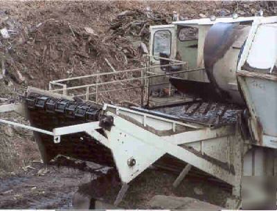 A 4 cylinder Cummins Diesel engine powers this large 1994 stationary topsoil plant. Material is fed into the 6’ diameter by 28’ long trommel with interchangeable screens from a hopper conveyor. The topsoil sifts through the trommel to pile below. Rock and wood pieces are then dumped into a 6000-gallon bath used for water separation. Conveyor out of the back of the system then carries the rocks and conveyor at the front discharges the wood. This plant has been used for land reclamation, screening topsoil and compost and to clean up old mill sites. Owner states that this will process 500 cubic yards dirty material and 1000 cubic yards clean material. Availability subject to prior sale from other sales efforts. |