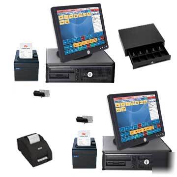 New 2 Stn Restaurant Touchscreen POS System & Software Call us at for a Custom System on E-Bay! Business Software Solutions, Inc. makers of Business Plus Accounting 2 Station Premier Restaurant POS System * 2 New Dell Optiplex Computers; 2.66 GHz, 256 MB RAM, 80 GB Hard Drive, 48X CD/RW Drive, Windows XP (3 Year On-site Warranty) * 2 New Dell 15" Touch Screen Flat Panel LCD Monitors (3 Year Warranty) * 1 New MMF Cash Drawer (2 Year Warranty) * 2 New Epson TM-T88 III Auto-cut Thermal Receipt Printers (2 Year Warranty) * 1 New Epson TM-220B Auto-cut Dot-Matrix Kitchen Printer (2 Year Warranty) * 2 New Magtek Magnetic Card Swipe Readers (1 Year Warranty) * BPA Restaurant Professional v8.0 Software (Multi-user License) * Printed Manuals for Restaurant Operations and Accounting Functions * BPA Video Training CD's for Learning the System and Training Your Servers * 90 Days Free Hardware Support * Unlimited Software Support & Upgrades as defined below in the software description. This system comes with the Restaurant Professional software installed and all hardware and networking configured. Plug in the cables, turn it on, and you are ready to get started! The included printed manuals and BPA Video Training CD's will help you get online quickly! Use the Video Training CD's to train your employees! All New Hardware carries a manufacturer's parts and labor warranty. Dell PC's carry a 3 Year on-site warranty. Complete Pizza/Delivery Systems Complete Pizza/Delivery systems including used and new hardware. Touch POS Systems with New or Used Hardware! New and Used non-touch POS systems. Add a POS Kit including hardware and software to existing PC's. Business Plus Accounting Restaurant Professional Your Restaurant POS System is more than just hardware. Unlike other restaurant systems available on E-Bay, Business Plus Accounting Restaurant Professional 8.0 is a complete Restaurant Point of Sale System built on top of a complete business accounting system. This means in addition to running your restaurant floor, BPA Restaurant Professional can help you track your inventory, your accounts receivable, your accounts payable, it can also help you write checks and balance your bank account. It can run your payroll, track maintenance on your equipment, and provide all of your general ledger and accounting reports. BPA Restaurant Professional also provides over 260 reports! See description of software features below. Be careful who you purchase your Restaurant System from on E-Bay. We are a software engineering company, in business since 1988. Most of our E-Bay competitors are also selling odds and ends, coins, furniture, etc. They are only selling restaurant systems because they recognize it as a profit opportunity. They will very likely be gone when you need support or additional equipment. We will still be selling and supporting our restaurant software long after the others have moved on. * Include up to 14 menus which can be accessed without scrolling through categories. Over 14,000 items can be included in the menu. * Each menu has a unique color to make it easier to know where you are. Items on a menu can be grouped and colored together. * Quick & Easy. One button Quick Sale and One button Quick Cashout functions. Automatically duplicate an item with a single button. * Flexible. Each item can have multiple sides and modifier lists assigned. Modifiers can include pricing. Cooking instructions and other notes can be added. Custom notes can be entered using an on-screen keyboard. Once an item has been entered, you can edit the item and the assigned modifiers. * Employees can clock in and out and can log in and out of the POS screen using the touch screen or using employee cards. * Managers can use the touch screen or their manager password card to authorize restricted functions like Voiding Tickets or Comp'ing items. * You can restrict actions that might allow employees to steal from you, such as removing items after a cook's ticket has been printed. * Print reports showing items that have been removed, tickets that have been voided, and items that have been comp'ed or discounted. * Specify which software modules and functions each employee has access to. One restaurant owner reported firing his whole staff after upgrading to BPA Restaurant Professional and finally being able to see how dishonest his employees were! BPA Restaurant Professional 8.0 is built on our Business Plus Accounting software package, and includes a complete set of business and accounting tools fully integrated with the restaurant point of sale. * Includes a payroll module which is integrated with the employee time clock. * Includes an equipment maintenance and tracking module for tracking your restaurant's equipment * The product recipe and inventory system pull appropriate ingredients from inventory for each item you sell, and allows you to automatically generate vendor orders for your ingredients and other inventory items * Product sales and costs are combined with overhead costs in the general ledger for a true picture of your profitability See below for a more complete list of accounting functions! * Integration Eliminates the Chance for Fraud or Error Due to Double Entry. Using Business Plus Accounting software and X-Charge, no re-keying of the sales amount is required. The amount tendered in BPA is exactly what is authorized via X-Charge. This integration virtually eliminates the chance for fraud or error. * X-Charge Consumes NO Counter Space. Counter space is at a premium. X-Charge software runs directly on the BPA POS station replacing standalone bank terminals, reducing the clutter at the checkout counter and providing more valuable space for selling. These few features are just the beginning of what BPA Restaurant Professional can do. Please see the feature list below for more details! This Product was recently shown at the "Western Food Service and Hospitality Expo" in Los Angeles. Visitors at the show described this product