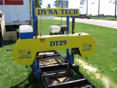 We are Proud to introduce to you a quality Dyna-Tech bandmill manufactured by a group of skilled craftsman who's milling experience is not measured in years but generations. Manufactured only two miles from our sales location with guarenteed support on both the manufacturing and sales end. The Dyna Tech line of bandmills are designed for serious log milling using eco-friendly, fuel-saving Honda power and our On Demand safety throttle. The Dyna-Tech Bandsaw Mill engages the blade only when the user employs the hand throttle. When not in use, the blade stops and the motor idles unlike most competitor bandmills, which keep the blade moving when not in use. The Result: A Bandsaw Mill with superior safety and fuel efficiency in one package. Heavy Tubular Tracks and large log capacity all for an affordable price. And of course the Dyna-Tech portable bandmills are built with the same attention to quality and solid durability which is consistent with all Dyna Products. THE DT-29 SERIES MODEL SEEN IN THE PICTURES EASY BLADE CHANGING & TENSIONING Measure the Dyna Tech Bandmill against the competition for cost savings, safety, and efficiency, and youll see why this is the smart choice. MILL's ARE CUSTOM BUILT TO ORDER HAVE A LED TIME OF 3 - 4 WEEKS CONTACT US THROUGH EMAIL OR DIRECT ADDITIONAL FEATURES ARE AVAILABLE |