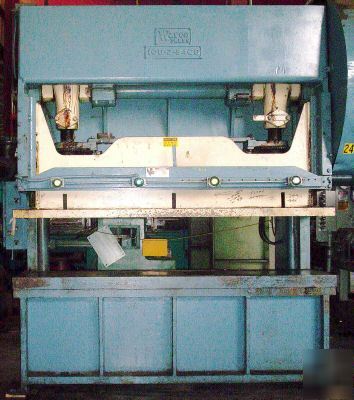 MACHINE TOOLS * PRINTING SHOPS * PLASTICS INDUSTRY * TEXTILE INDUSTRY Warco Double Crank Gap Frame Press, 100-2-84-CG, Bed: 26 x 100, 100 Ton, 10’ x 8’ x 11’, 22,000 lbs Stroke: 8", 35/ minute, slide adj. 4", shut height 18" Complete company information: address, contact person, phone number, fax number, destination address if different then company address already provided. Date which item will be picked up, our loading hours: Mon-Fri 8-5pm, closed from 12-1pm Payable to A&A Machinery Sales Wire Transfer, Cashier’s Check/ Money Order accepted for immediate release. Personal/ Business Checks need approximately 2 weeks for confirmation that the check has cleared our bank before item is released. CONVENIENTLY SERVING PENNSYLVANIA * NEW JERSEY * DELAWARE 201 DEAN SIEVERS PLACE * MORRISVILLE, PA. 19067 |
