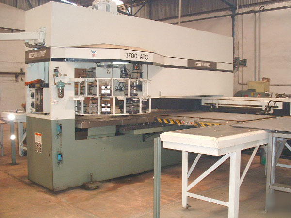 WHITNEY MODEL 3700-ATC TURRET PUNCH PRESS* Capacity: 40 Tons Maximum Sheet Size: 120" x 63" (without repositioning) Maximum Positioning Speed: 2000 IPM (X & Y) Maximum Sheet Thickness: .625" Maximum Hole Diameter: 5.00" Maximum Hit Rate: 180 HPM (on 1" Centers) Nibbling Speed: 225 HPM EQUIPPED WITH: Fanuc 00P CNC Control Approximate Overall Dimensions: Approximate Weight: Serial Number: (New 1994) P2 Where Is" APODACA, NL - $120,000.00 * PRELIMINARY SPECIFICATIONS SUBJECT TO VERIFICATION Email us at Call our Sales Staff at Prices do not include any federal, state or local taxes, which are in addition to the purchase price and must be paid by the Purchaser. Any and all foreign duties and taxes are the responsibility of Purchaser. Unless Purchaser furnishes PMS with a tax exemption certificate, any sales, use, excise, or other similar tax, where applicable, shall also be the responsibility of Purchaser and may, at the election of PMS, be added to the quoted purchase price and invoiced by PMS to Purchaser. The failure of PMS to invoice such taxes does not excuse the Purchaser from responsibility for paying necessary taxes. Some machinery and equipment is located at Fortune 100 Manufacturing Facilities. Most of the machinery and equipment located at these Facilities is disconnected and cannot be seen under power. Unless specifically listed in writing by PMS, all machinery and equipment uses 3 Phase power. (outside US & Canada) Email: |