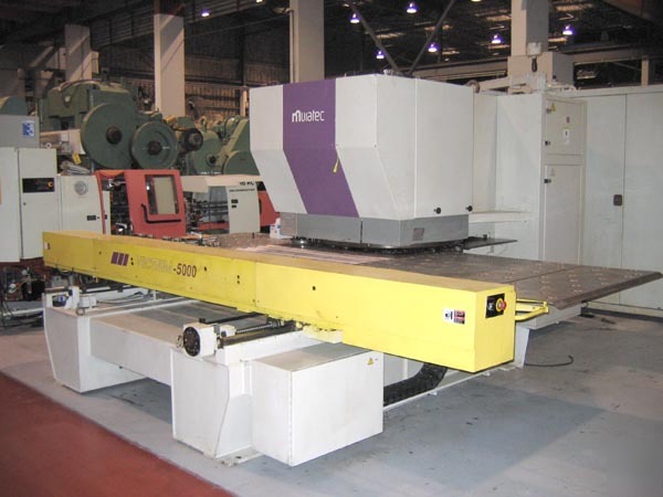 WIEDEMANN-MURATA MODEL VECTRUM-5000 CNC TURRET PUNCH W/PLASMA* Capacity: 50 Ton Stroke: 1.355" Maximum Sheet Thickness: .375" Maximum Sheet Size: 60" x 72" (w/o Reposition) 60" x 144" (w/Reposition) Maximum Traverse: 62" x 74" Throat Depth: 62" Maximum Sheet Weight: 440 Lbs. Turret Configuration: 52 Stations - (20) Up To 1"Dia.(Rounds Only) (18) Up To 1" Diameter; (6) 1" To 1.5" Diameter; (2) 1.5" to 2" Diameter; (2) 2" to 3" Diameter; (2) 3" to 6" Diameter; (2) Auto-Index (up to 2" Diameter) Turret Speed: 30 RPM (Bi-Directional) Maximum Hit Rate: 215 HPM (1" Increment Movement) 335 SPM (Nibbling) EQUIPPED WITH: Fanuc 16P CNC Control Thermal Dynamic 150 Amp Plasma Unit Digital Hydraulic Servo Controlled Ram Hydraulic Work Clamping; Automatic Repositioning Slug Conveyor; Chiller Unit; Dust Collector Hydraulic Power Unit w/110 Gal. Oil Reservoir 50 HP AC Main Pump Motor Approximate Overall Dimensions: 180" L-R x 115" F-B x 108" H Approximate Weight: 45,000 Lbs.(HEAD: 128"X 65"X 108"H) (CONV: 160"X 30"X 62"H) Serial Number: 641 (New 1995) P2 F.O.B. Elk Grove, IL - $169,500.00 * PRELIMINARY SPECIFICATIONS SUBJECT TO VERIFICATION Email us at Call our Sales Staff at Prices do not include any federal, state or local taxes, which are in addition to the purchase price and must be paid by the Purchaser. Any and all foreign duties and taxes are the responsibility of Purchaser. Unless Purchaser furnishes PMS with a tax exemption certificate, any sales, use, excise, or other similar tax, where applicable, shall also be the responsibility of Purchaser and may, at the election of PMS, be added to the quoted purchase price and invoiced by PMS to Purchaser. The failure of PMS to invoice such taxes does not excuse the Purchaser from responsibility for paying necessary taxes. Some machinery and equipment is located at Fortune 100 Manufacturing Facilities. Most of the machinery and equipment located at these Facilities is disconnected and cannot be seen under power. Unless specifically listed in writing by PMS, all machinery and equipment uses 3 Phase power. (outside US & Canada) Email: |