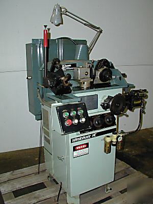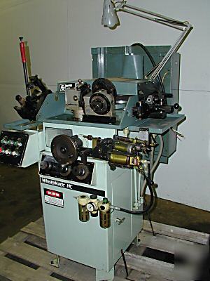 Winslow Model HC Drill Point Sharpener for producing Conventional, Helical, racon, Bickford, Split Point, or Four Facet Drill Points. The HC is built to machine tool quality standards to insure precision ground drill points. The machine is available with accessory kits providing capacity of 60 to 140 degree included point angles and drill sizes up to 1.50” diameter. Serial # 940 00586-87, New in 1987 Point Confirgurations-Conventional and Helical Included Drill Point Angle-90 to 140 degrees Drill Size Range-.0625 thru .750 diameter |