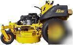 Click to visit Interstate Supplies & Services Cutting Height Range: 1.0"- 5.25" Deck Lift System: Rapid-Hite (patented by Wright Mfg.) Deck Construction: Heavy Duty Commercial Fabricated 7 Gauge Blades (1/4" thick, high-lift wings): 3 (21") Blade Tip Speed (fpm at 3584rpm): 19,000 Spindles (1" shaft with precision ball bearings): Cast Iron Housing Blade Clutch/Brake (Maintenance Free, heavy Duty): Warner Overall Width (Deflector Down): 61"- 62" (72") 2 Year Limited Warranty covering both parts and labor. All items are new. Contact us at , or call . Please remember that if you purchase from us and you live in North Carolina, you will have to pay a 7.0% sales tax. |